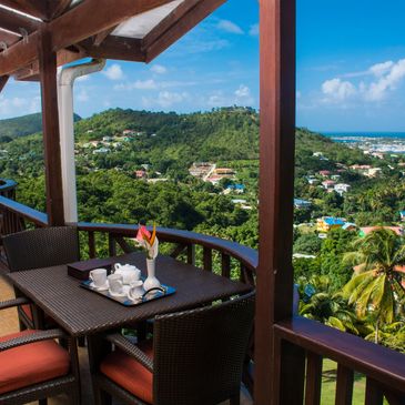 Choose from four recently redecorated tropical villas and apartments . Each vacation rental has gorgeous, unobstructed views of the surrounding hills and the Rodney Bay Marina. On a clear day you can see cars driving on the French island of Martinique. To make your stay even more stress-free, our contact-less interaction with the owners makes check-in and check-out a breeze!